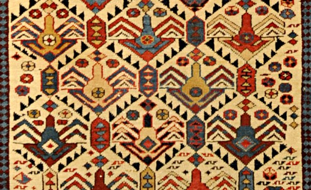 The main border (the widest), known as "reciprocal", is highly appreciated in the Caucasus carpets. It stands out for its simplicity and elegance.