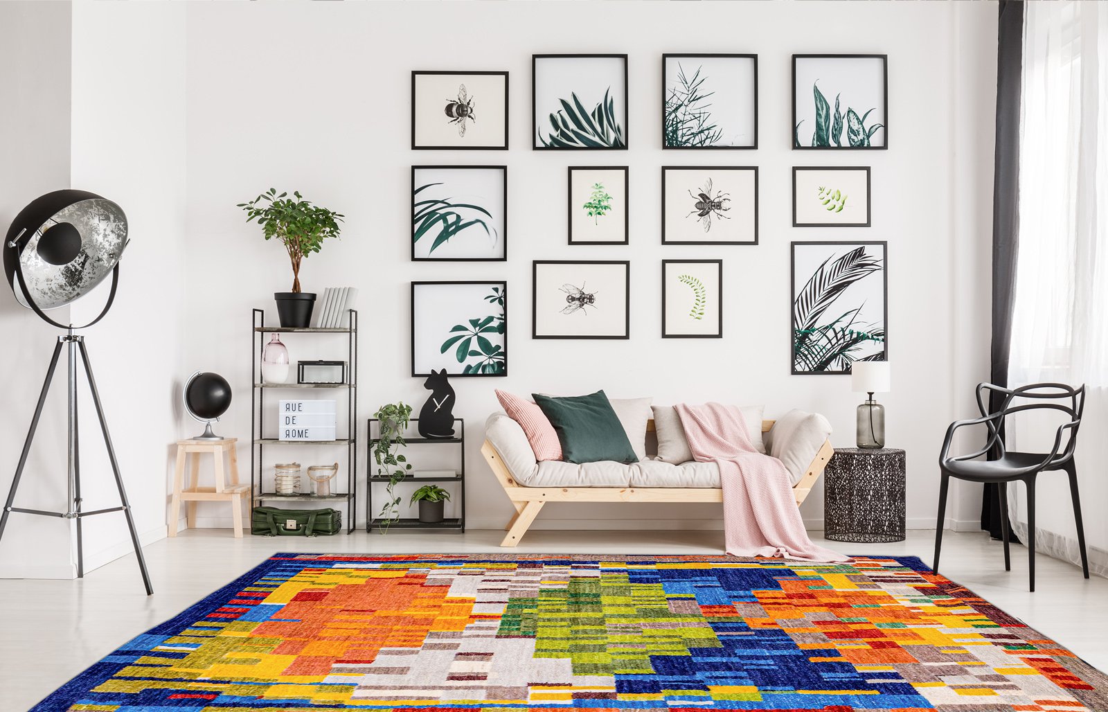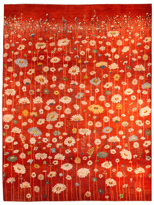 Y un tercer grupo de piezas que conforman todo un nuevo universo de motivos y diseños mucho más actuales, entre los que podemos encontrar reinterpretaciones de los clásicos motivos florales de las alfombras persas; otro grupo de piezas que parte de las formas geométricas básicas cómo los triángulos y los cuadrados, llevados estos a su máxima expresión, y un tercer diseño de alfombras que parte de las líneas y los trazados más simples, componiendo con ellos piezas de una gran sencillez pero con una tremenda expresividad.