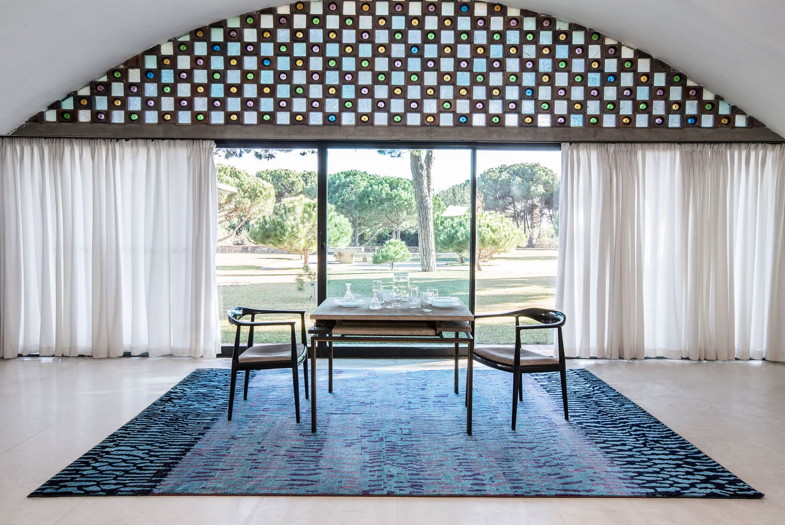 La colección consta de diferentes piezas en cuantos a estilos y procedencia, coexistiendo entre ellas con el color azul como nexo principal. Además, todas las alfombras y kilims tienen un aire marcadamente actual que nos permitirán jugar con diferentes estilos y espacios decorativos: desde espacios de ambientación puramente industrial a espacios minimalistas y de líneas rectas, pasando por escenas barrocas o vintage en los que la mezcla de estilo contribuyan a la suma del conjunto.